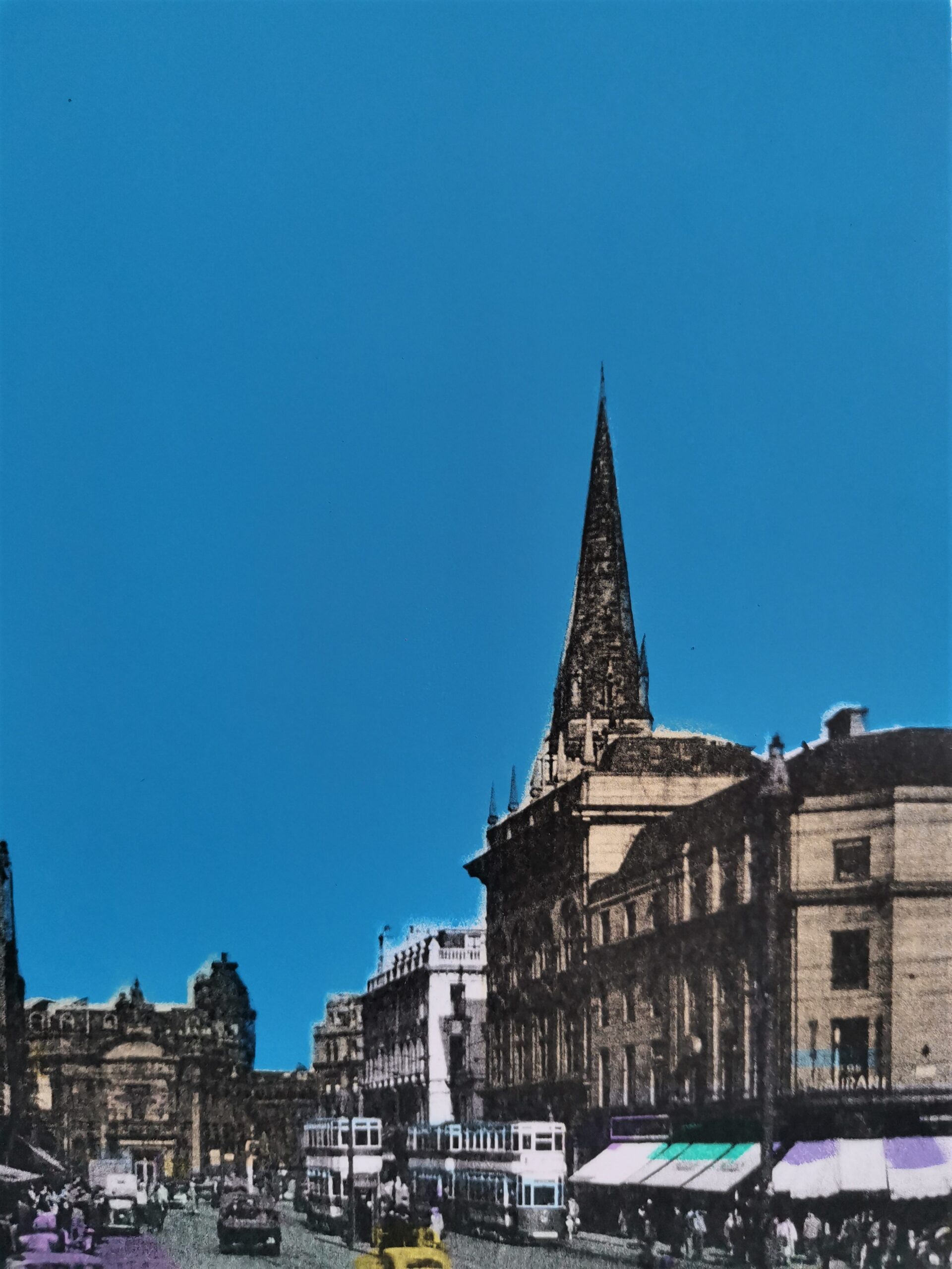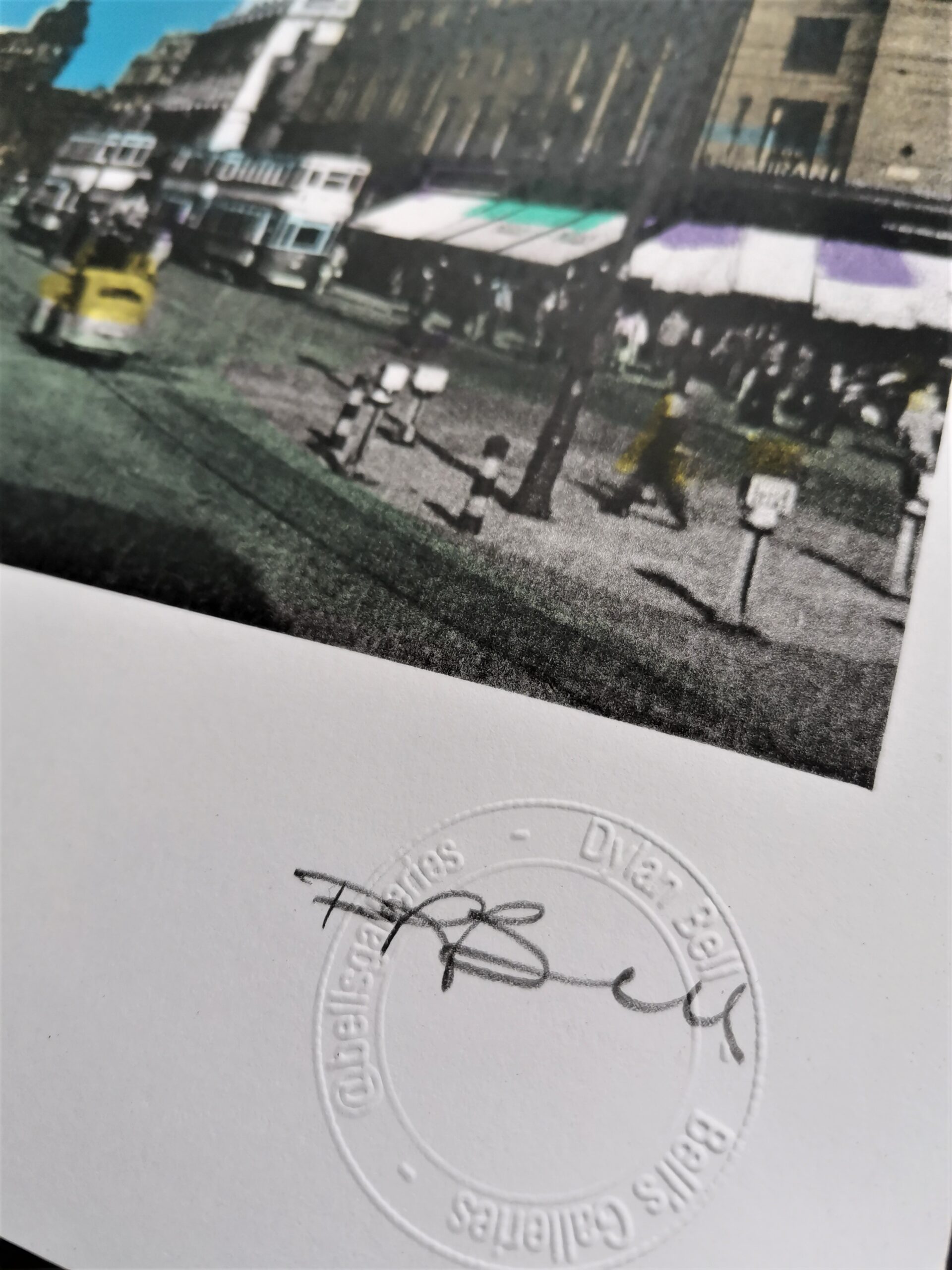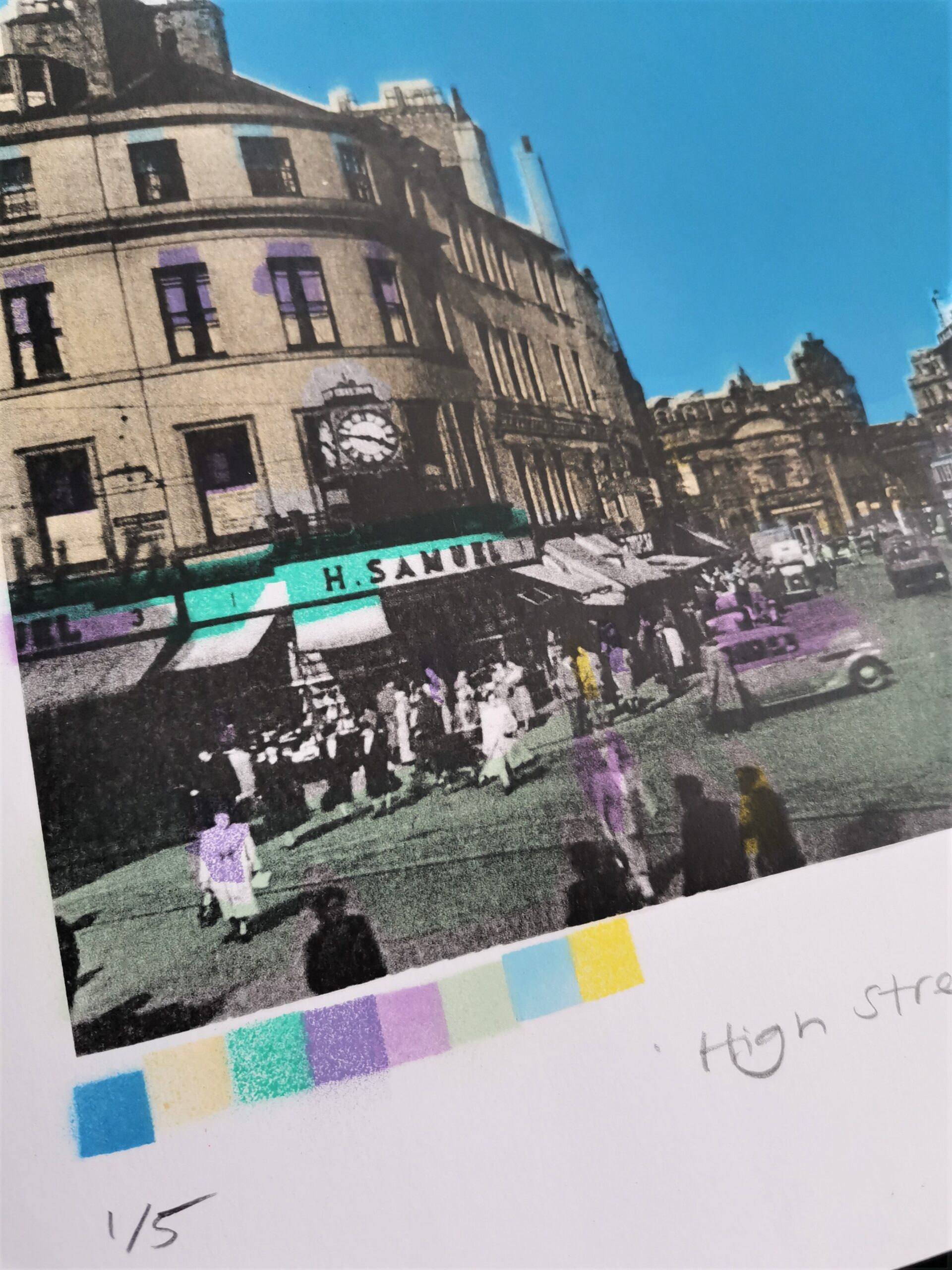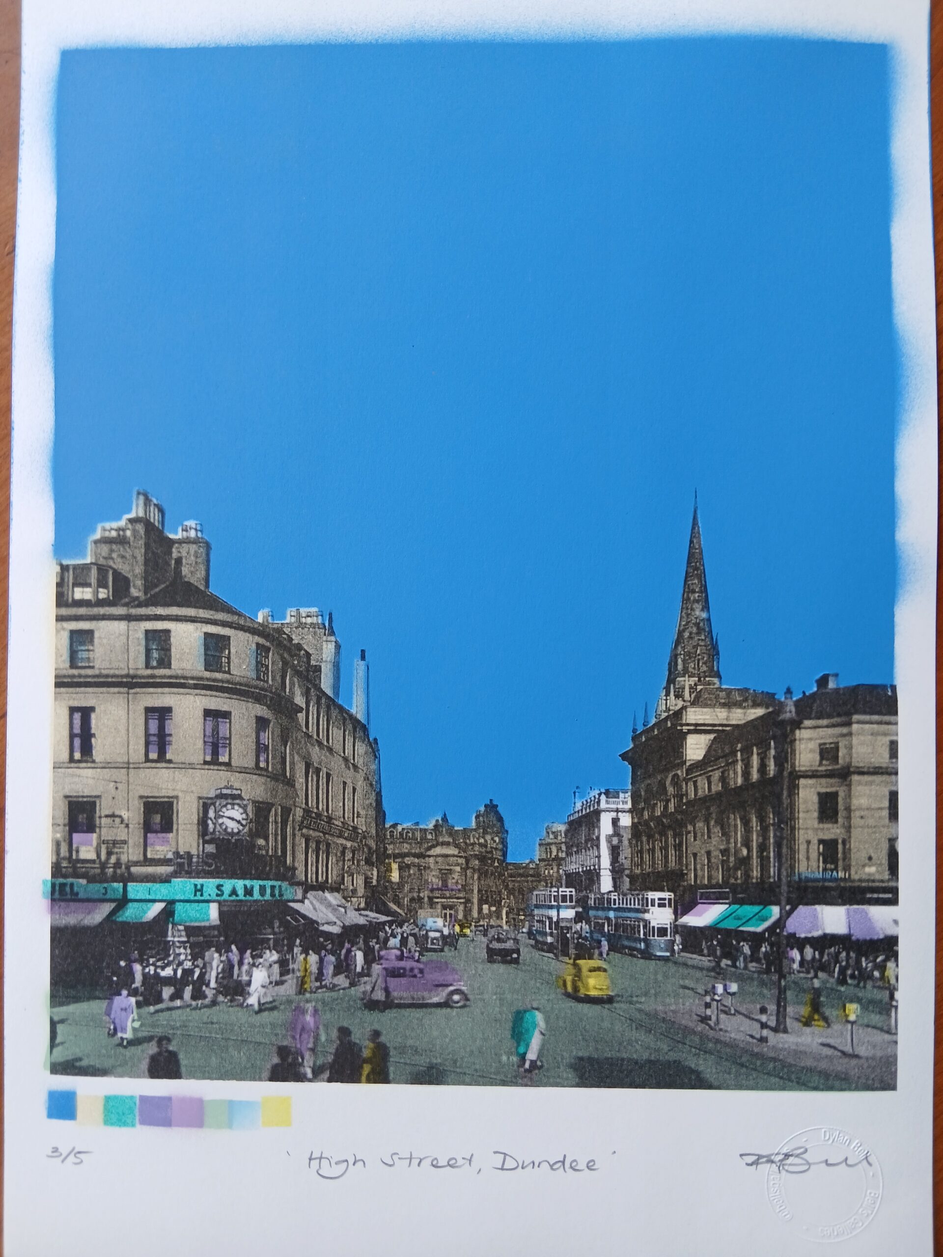 All prints are completed on 300gsm card, measuring (approx. 30cm x 42cm) using acrylic paints and water-based ink. The multiple layers are all manually hand stencilled, it is individually, signed, titled embossed and comes backed on two sheets of corrugated cardboard or sandwiched in tissue and rolled in a wide diameter tube.